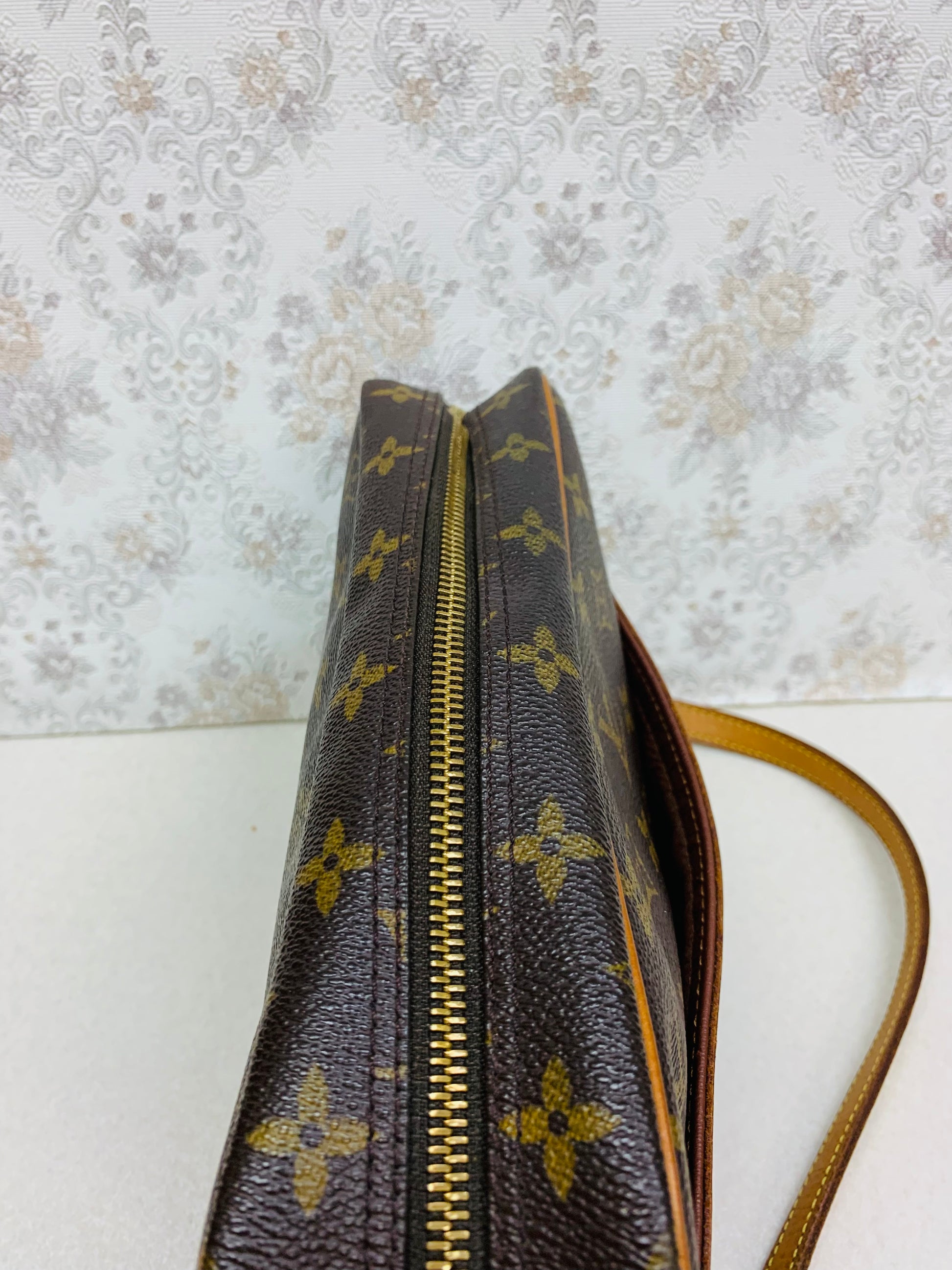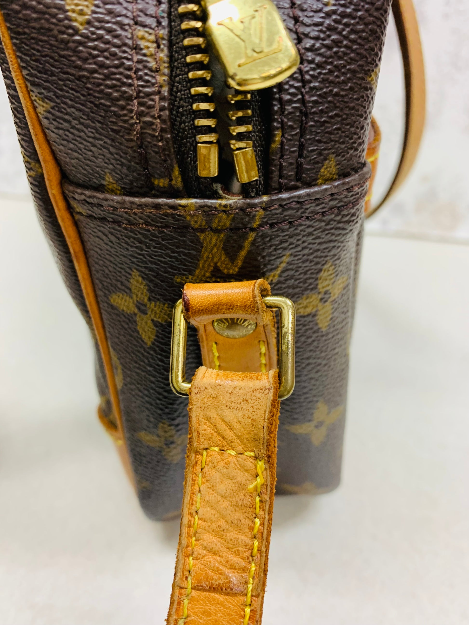 - Material: Monogram coated canvas with natural Vachetta leather trim