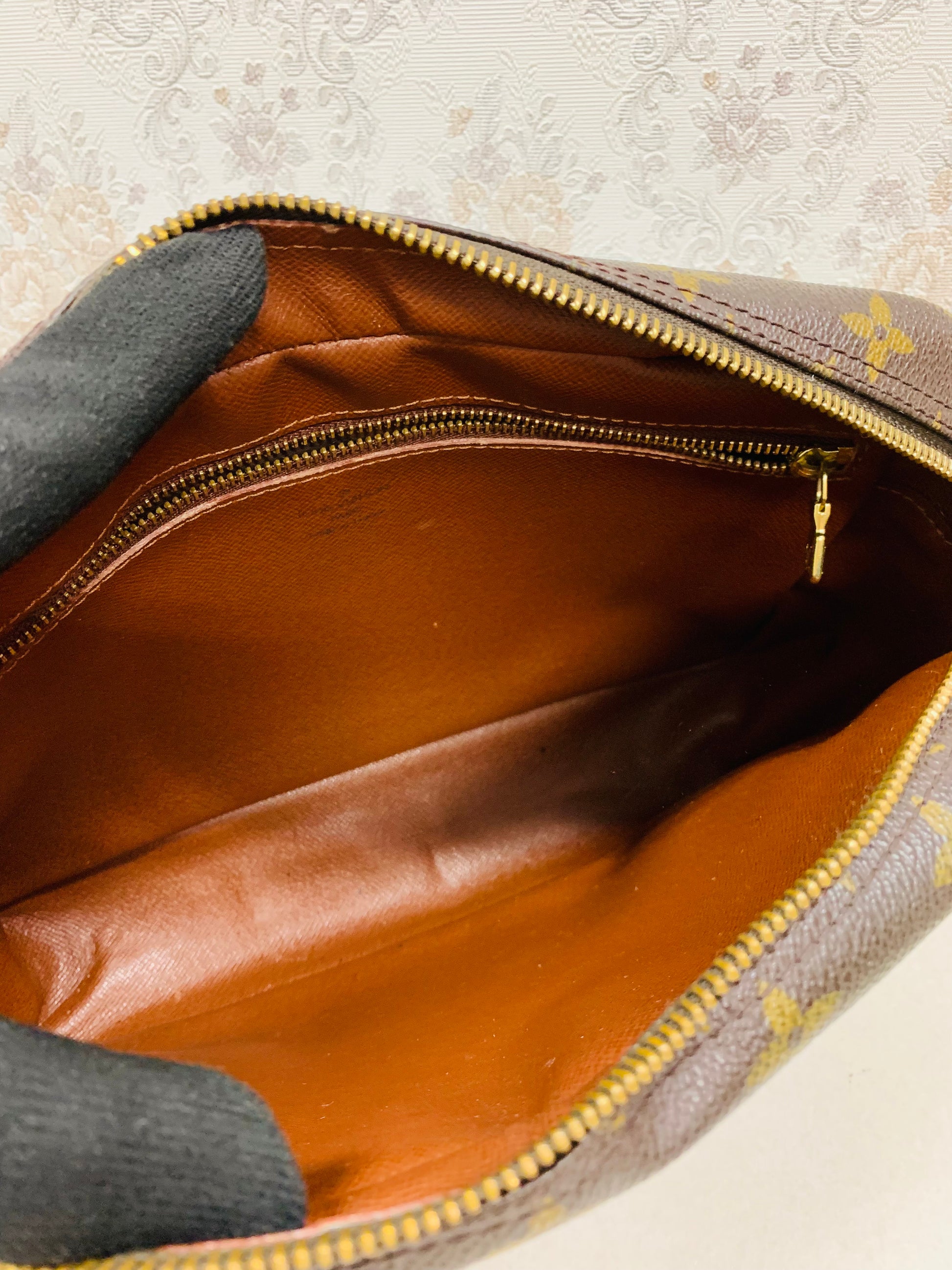 - Interior: Brown cross-grain leather lining (often shows peeling in vintage pieces)