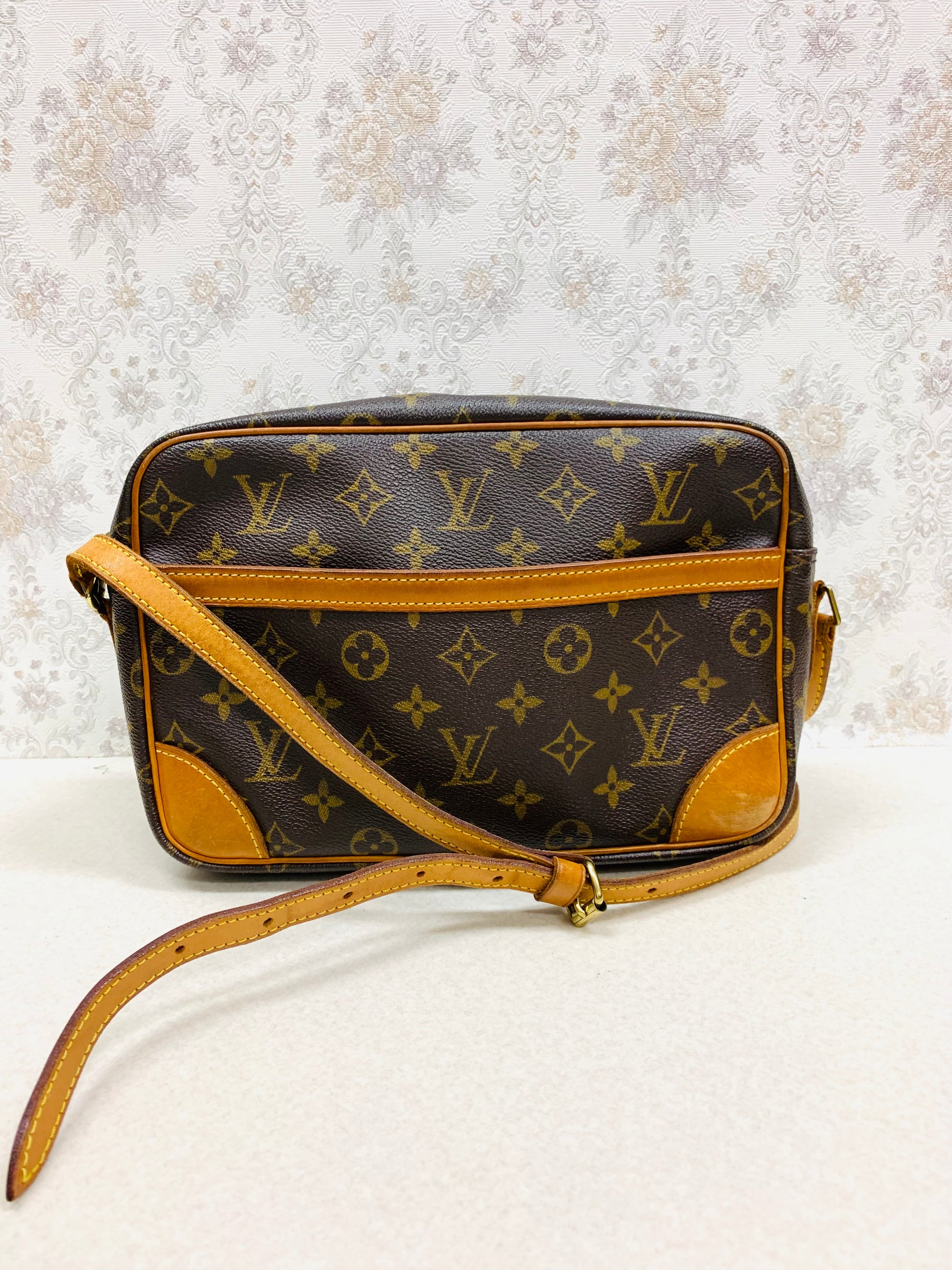 This Louis Vuitton Monogram Trocadero 27 is a sophisticated vintage shoulder bag that blends daily functionality with timeless Louis Vuitton style. Crafted from iconic Monogram coated canvas, it is complemented by natural vachetta leather trim that develops a beautiful patina over time. Designed with a structured, rectangular silhouette and a secure zip-top interior, this bag offers organized storage with multiple pockets, including a convenient front exterior compartment. It features a long, adjustable leather strap, allowing it to be carried comfortably as a shoulder bag or a classic crossbody for hands-free ease.