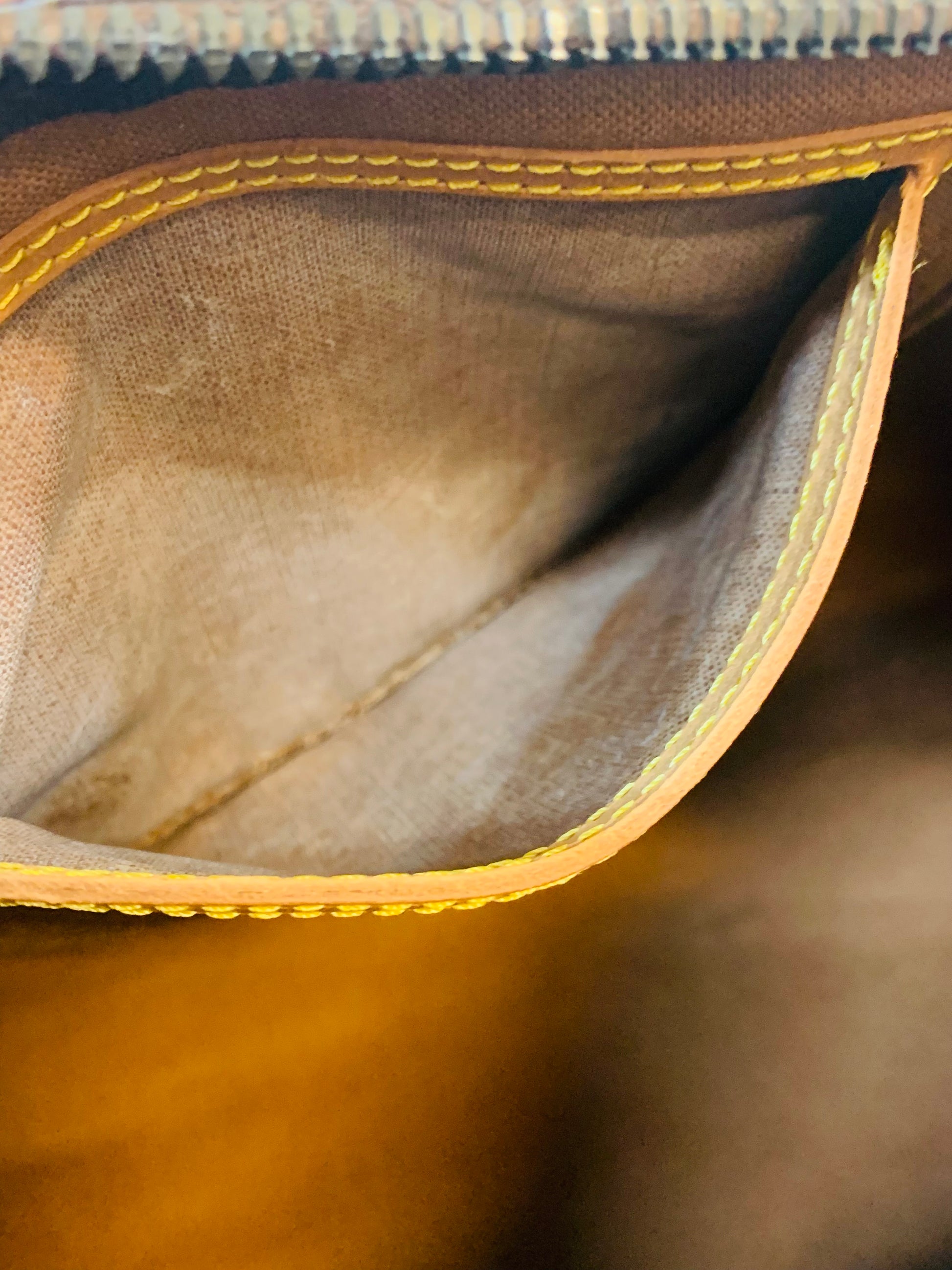 ▪️Hardware has tarnish due to its age but zipper works very good. Leather puller has hairline cracks.