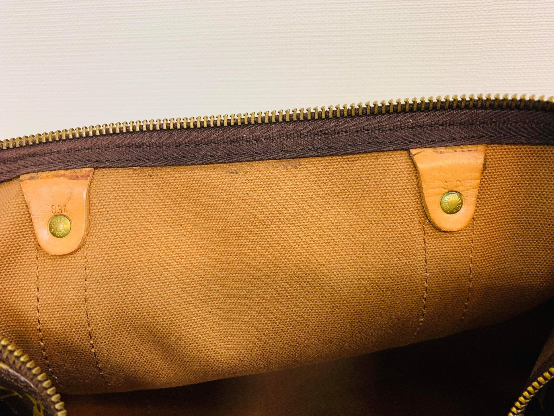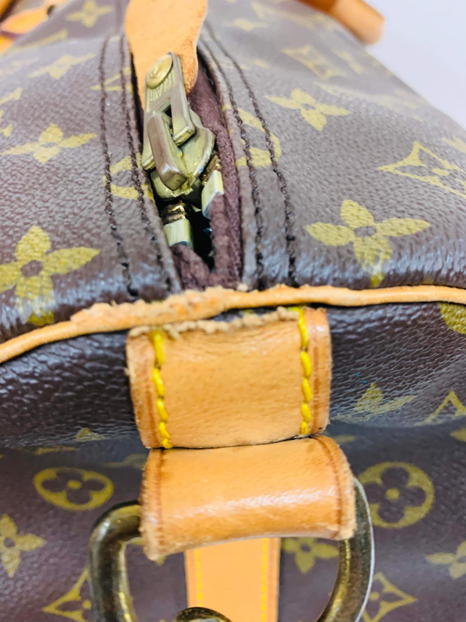 Canvas has no cracks, Leather has sign of wear and rip.zipper works very good