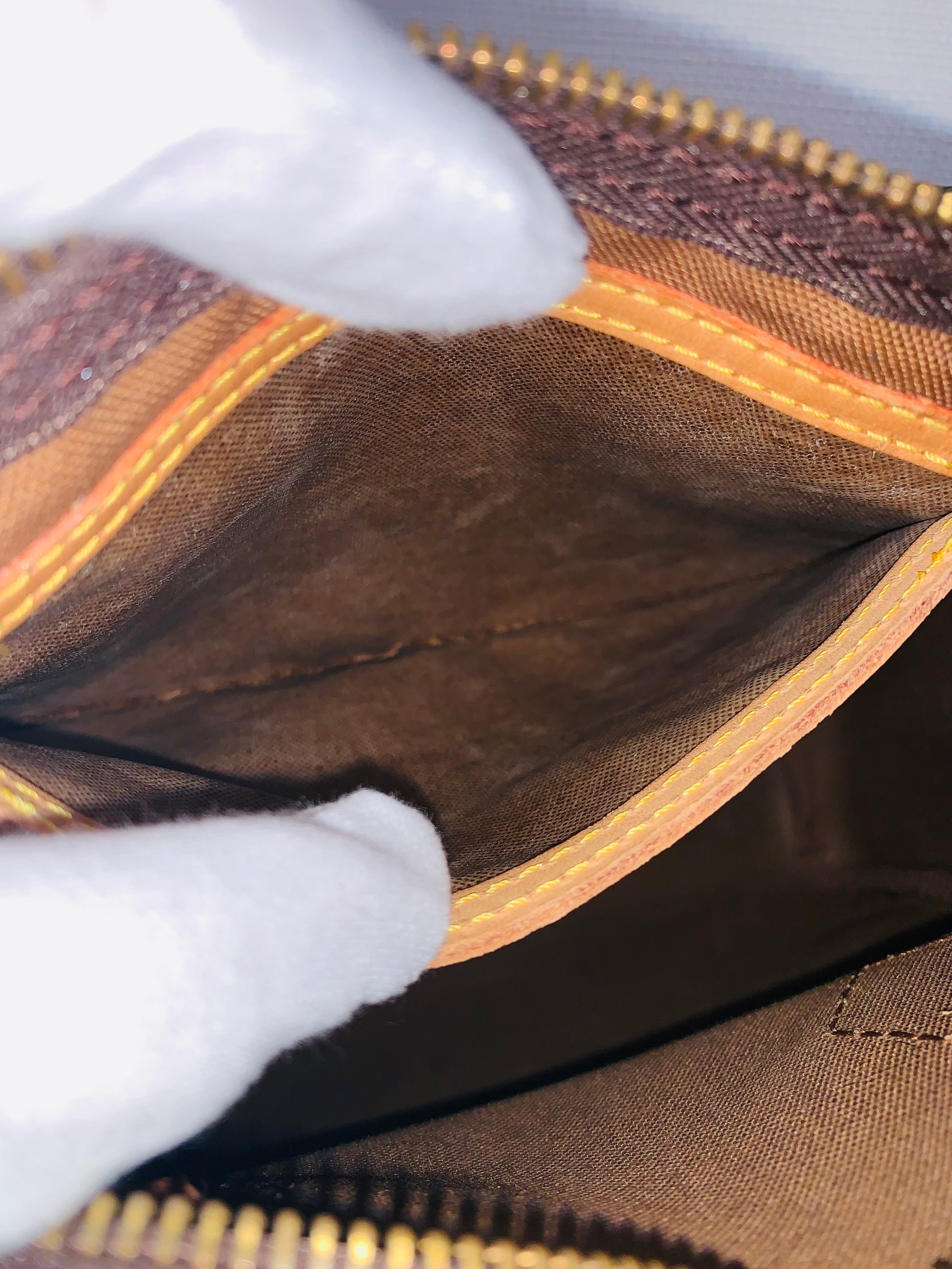 HARDWARE:Has hairline and scratches,little tarnished,zipper works very good.
