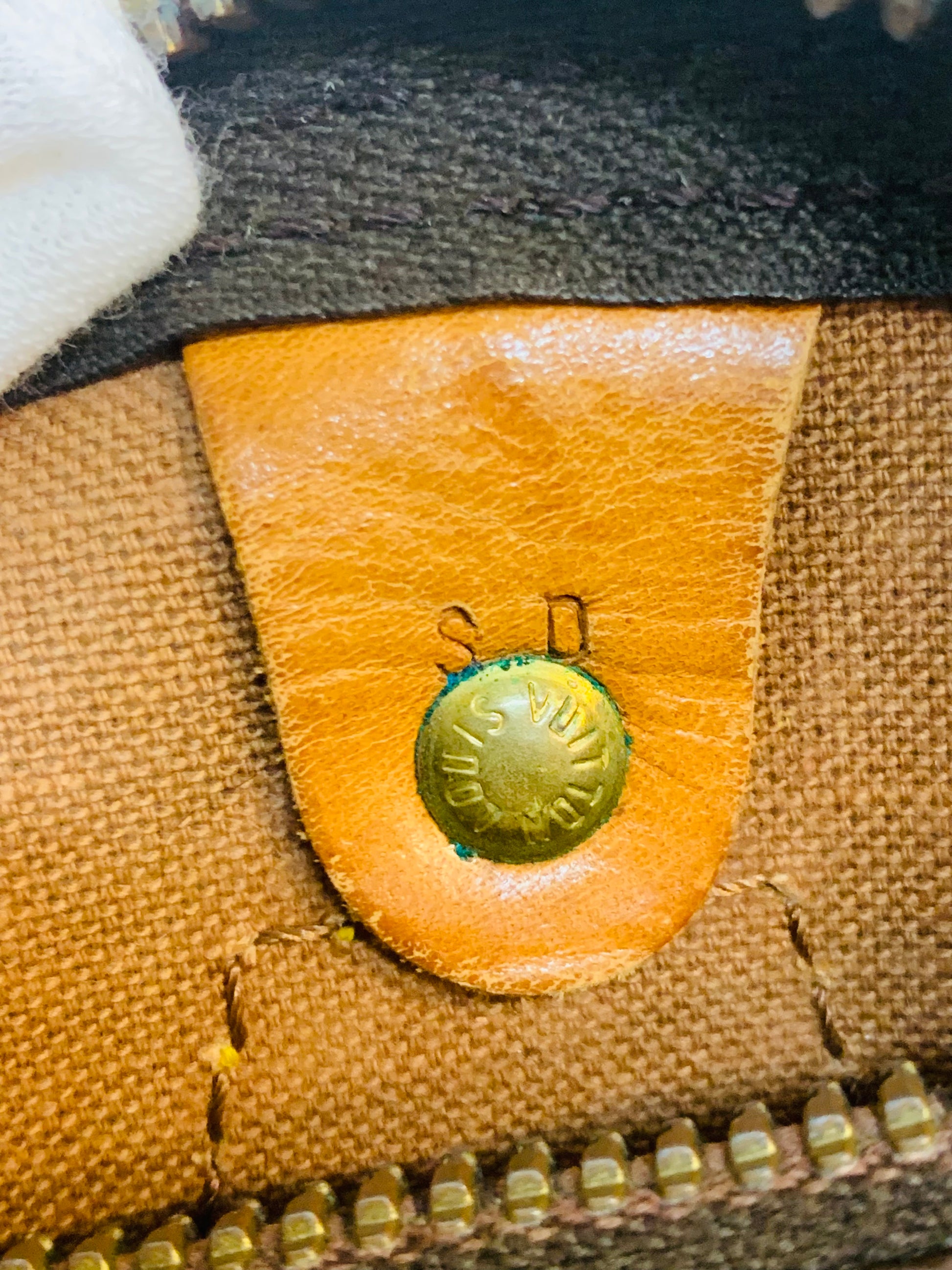 HARDWARE: Ā Has hairline and scratches,tarnished,zipper works very good.