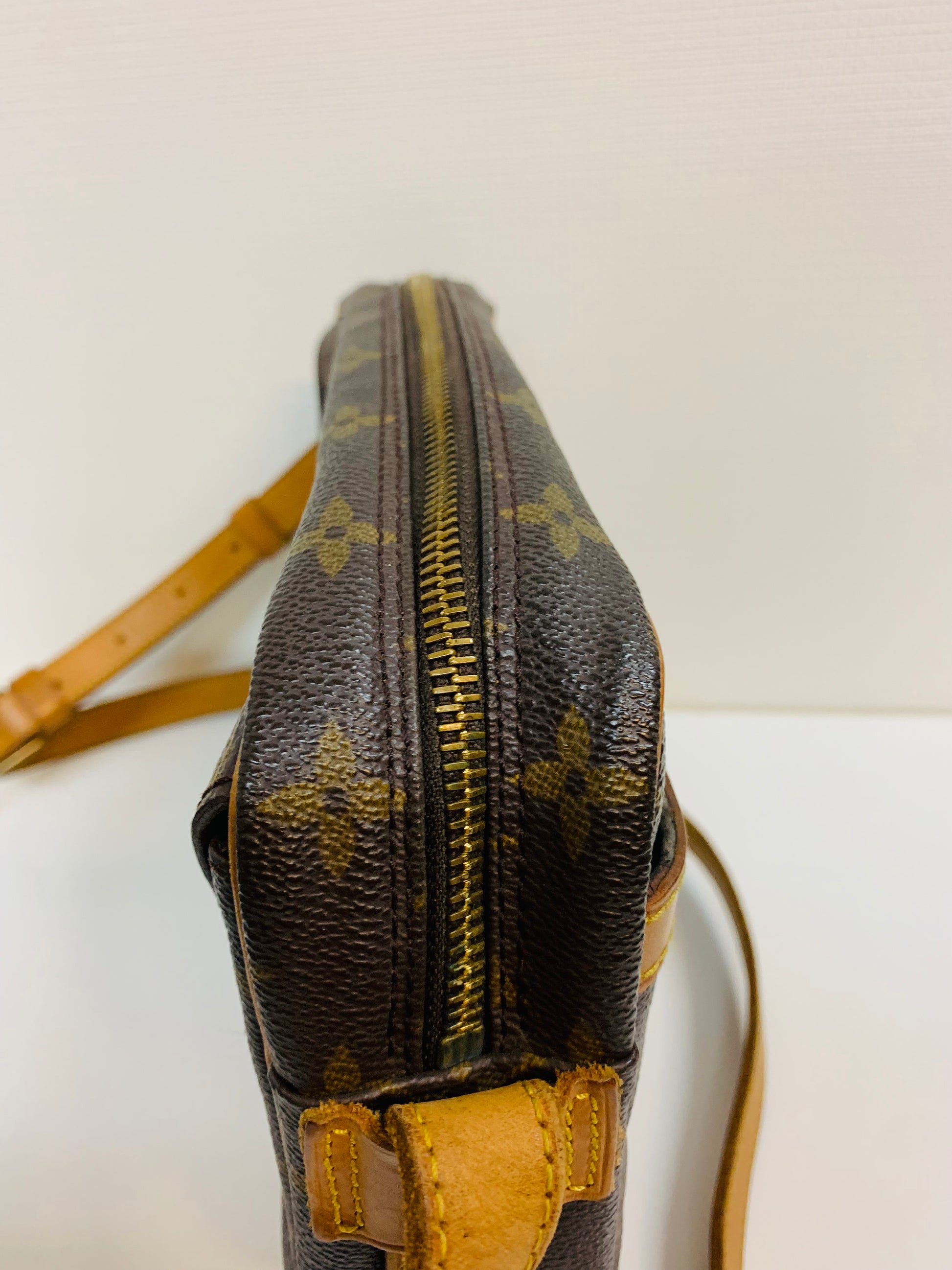 This item shows sign of wear from previous use,but still in good condition and has a lot of life in it. Corners, creases in leather, and tarnished hardware may be visible.